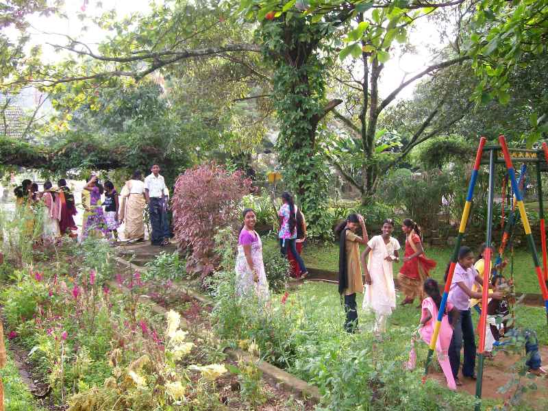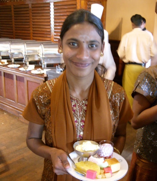 We departed Nayabedde by chartered bus at about 2:00 pm for the short ride down to Bandarawela. We were greeted at the door with chocolates, and enjoyed some free time to see our gifts and enjoy the beautiful gardens of the hotel (during a rare break in the monsoon rains!). We each had our photograph taken in the gardens, after which we eagerly filed into the dining hall for our fantastic buffet dinner and all-you-can-eat dessert! -every child's dream...Our Party