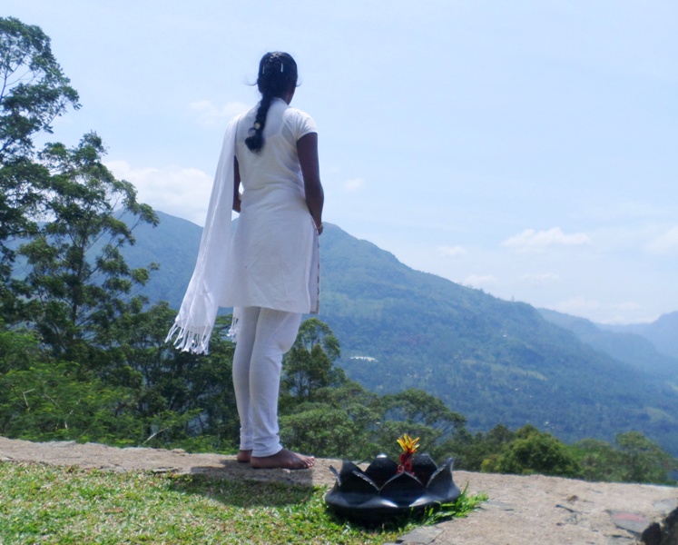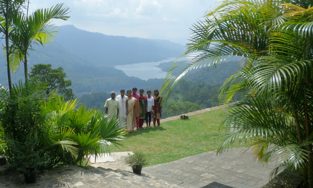 We departed our Sunset Villa home at 7:30 in the morning for the bus-ride into Kandy town. From there, we boarded a bus to Ramboda, arriving at the foot of the temple mountain two hours later. A short walk up the mountainside lane and we were at the beautiful temple grounds. We made a brief visit to the temple during last year's Nuwara Eliya trip and have since been anxious to return and spend more time. The temple is situated in a mystic and remarkably scenic, inspiring location. It has been a temple site from ancient times, and legend is that the Hindu god Hanuman chose this place to meditate during his legendary sojourns in Sri Lanka, -an important part of Sri Lankan historical lore. We were accompanied by our dear Matron, as well as Matron's visiting father, our "grandfather", -a lovely man whose presence made our day that much more memorable.Acknowledgements