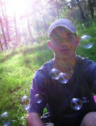 Sergey, blowing bubbles