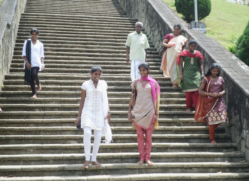 We departed our Sunset Villa home at 7:30 in the morning for the bus-ride into Kandy town. From there, we boarded a bus to Ramboda, arriving at the foot of the temple mountain two hours later. A short walk up the mountainside lane and we were at the beautiful temple grounds. We made a brief visit to the temple during last year's Nuwara Eliya trip and have since been anxious to return and spend more time. The temple is situated in a mystic and remarkably scenic, inspiring location. It has been a temple site from ancient times, and legend is that the Hindu god Hanuman chose this place to meditate during his legendary sojourns in Sri Lanka, -an important part of Sri Lankan historical lore. We were accompanied by our dear Matron, as well as Matron's visiting father, our "grandfather", -a lovely man whose presence made our day that much more memorable.Acknowledgements